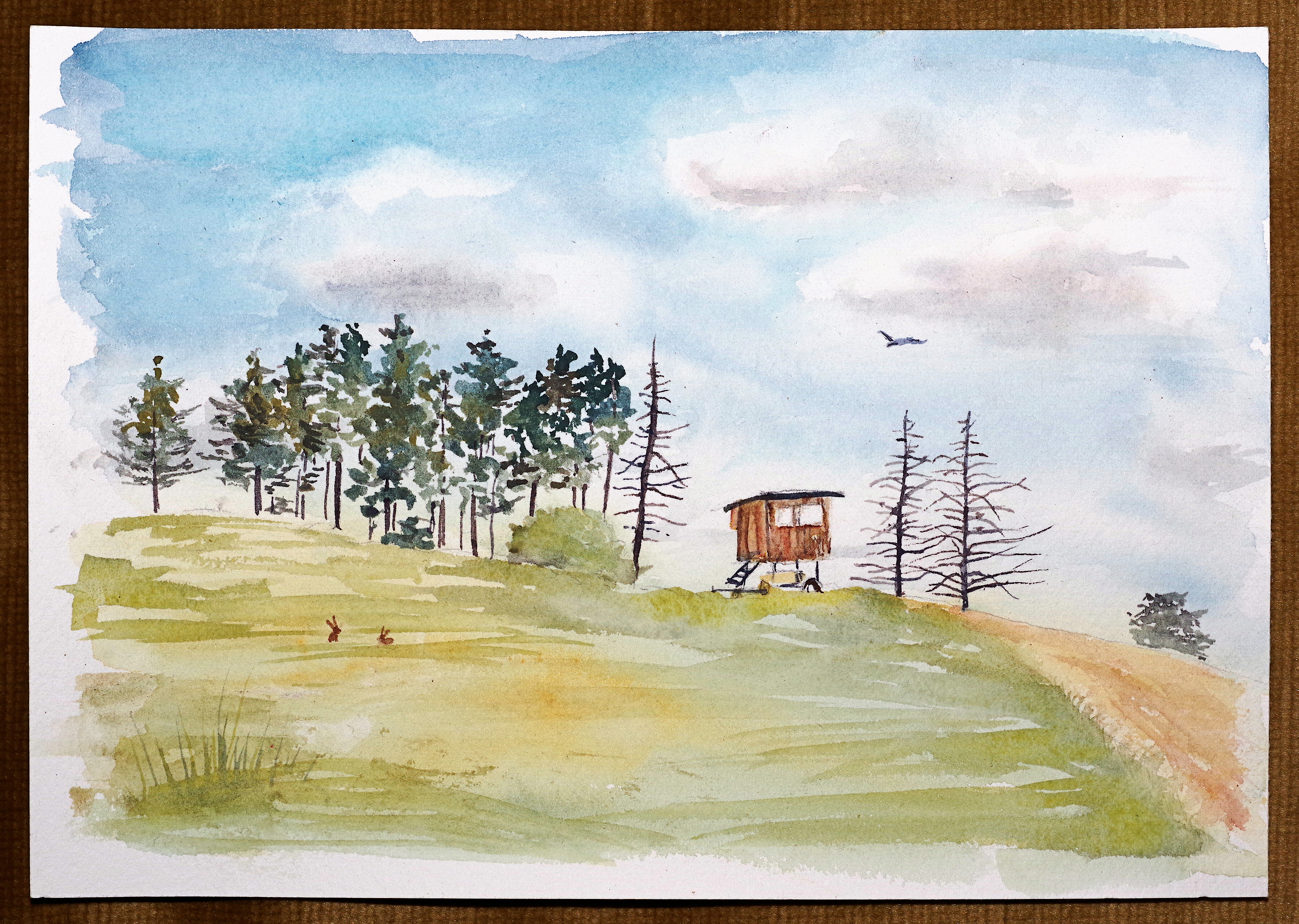 Obrázek zajíců a posedu u Bačkovic