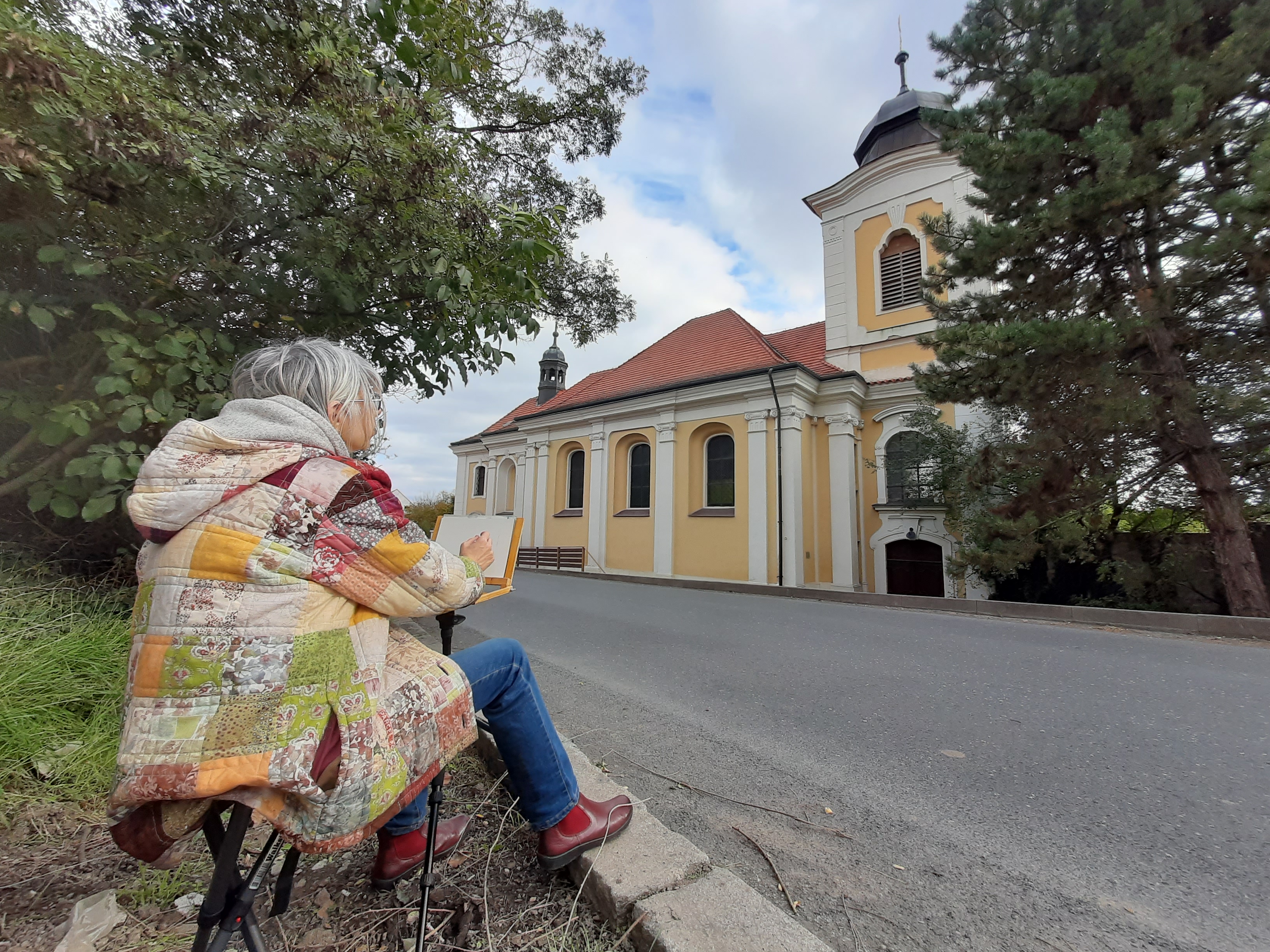 Malování kostela v Uněticích